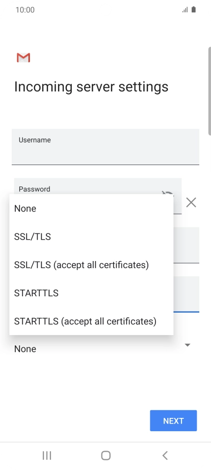 Press the field below "Server" and key in the name of your email provider's incoming server.