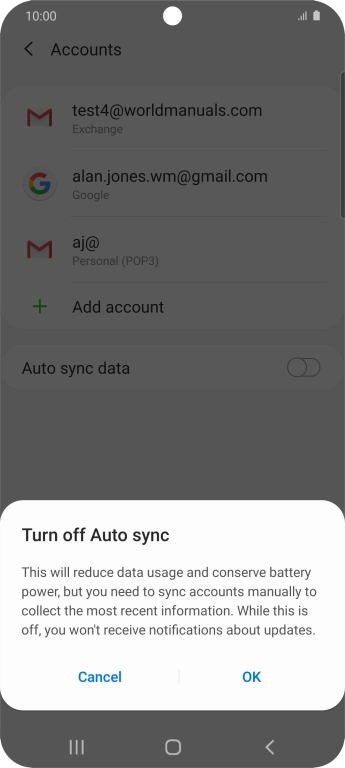Press the indicator next to "Auto sync data" to turn the function on or off.