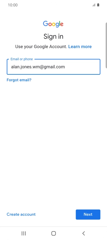 If you don't have a Google account, press Create account and follow the instructions on the screen to create an account.
