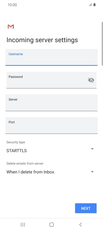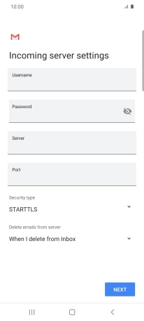 Press the field below "Server" and key in the name of your email provider's incoming server.