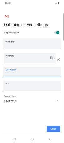 Press the field below "Username" and key in the username for your email the email provider's outgoing server.