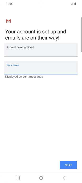 If this screen is displayed, you email account has been recognised and set up automatically. Follow the instructions on the screen to key in more information and finish setting up your phone.
