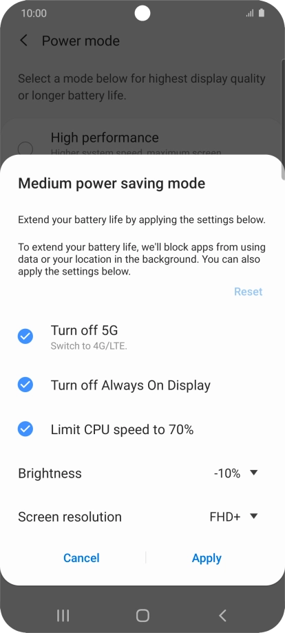 Press Power mode.