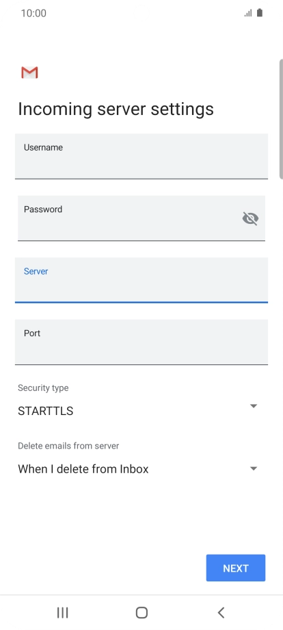 Press the field below "Server" and key in the name of your email provider's incoming server.