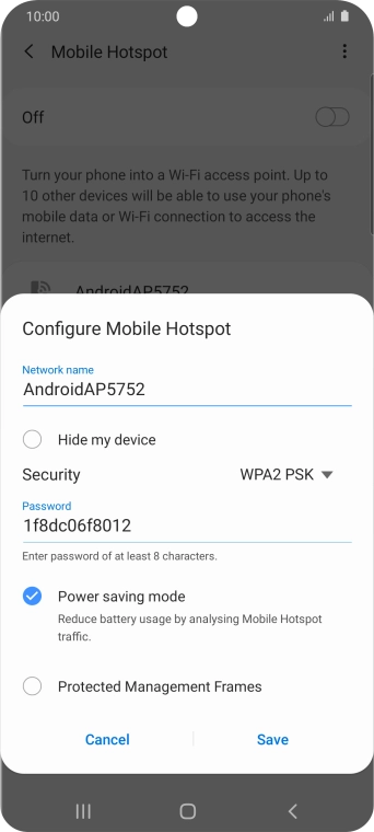 Press WPA2 PSK to password protect your Wi-Fi hotspot.