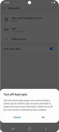 Press the indicator next to "Auto sync data" to turn the function on or off.