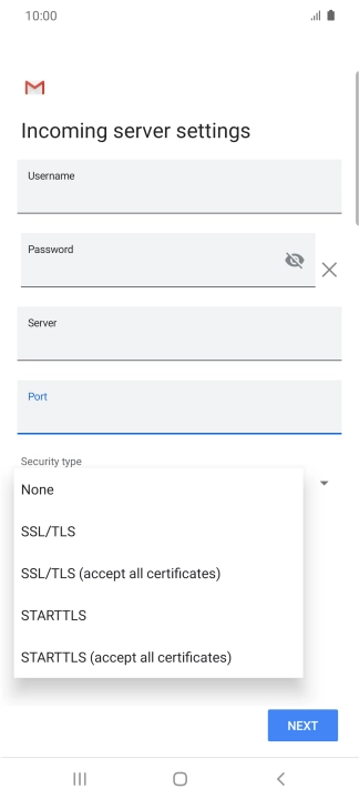 Press the field below "Server" and key in the name of your email provider's incoming server.