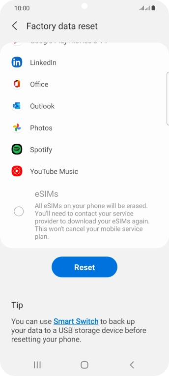 Press Factory data reset.