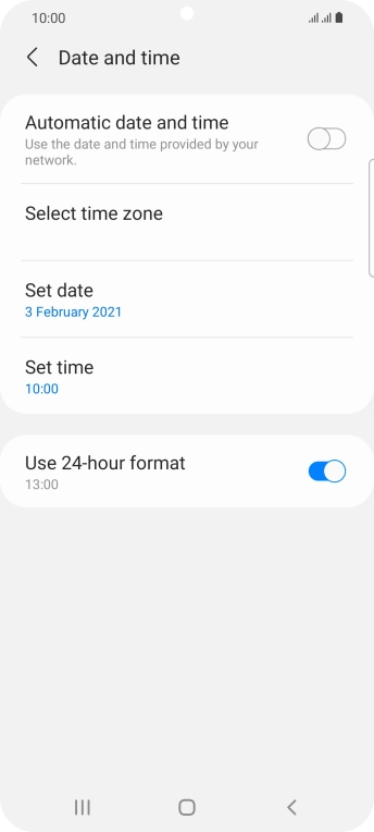 Press the indicator next to "Automatic date and time" to turn on the function.