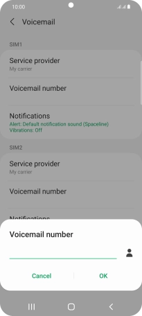 Press Voicemail number below the required SIM.