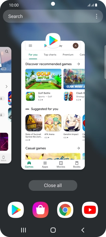 To end all running applications, press Close all.