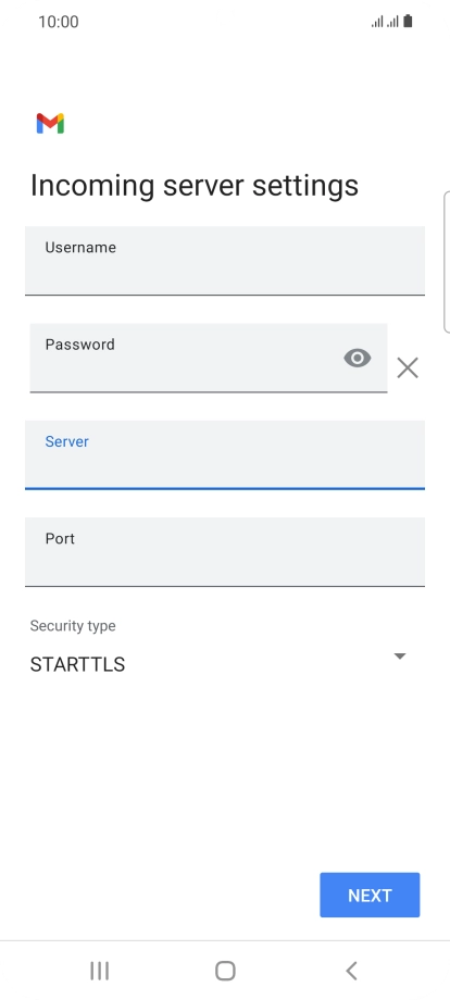 Press the field below "Server" and key in the name of your email provider's incoming server.