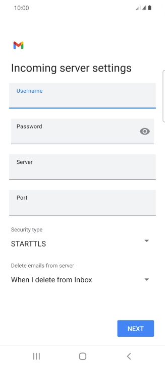 Press the field below "Server" and key in the name of your email provider's incoming server.