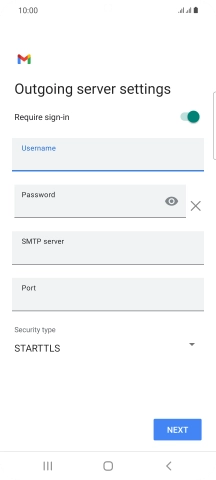 Press the field below "Username" and key in the username for your email the email provider's outgoing server.