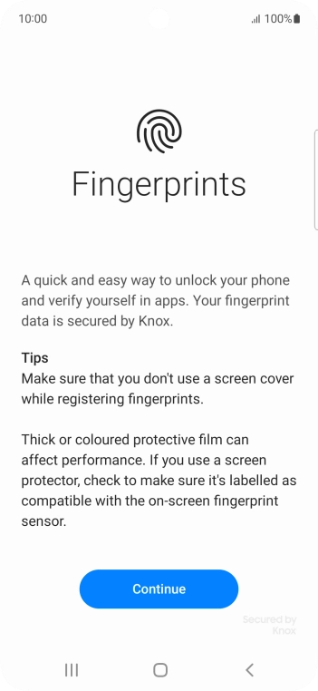Follow the instructions on the screen to create the phone lock code using your fingerprint.