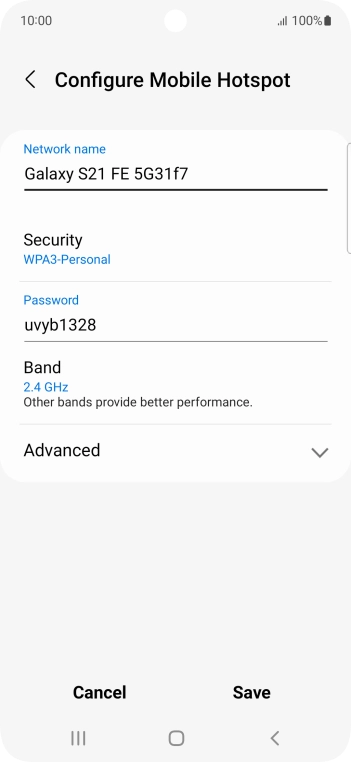 Press WPA3-Personal to password protect your Wi-Fi hotspot.