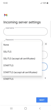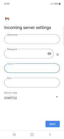 Press the field below "Server" and key in the name of your email provider's incoming server.