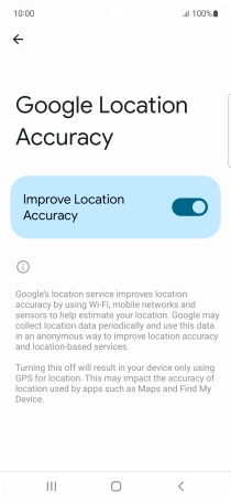 If you press the indicator next to "Improve Location Accuracy" to turn off the function, your phone can find your exact position using the GPS satellites but it may take longer as there is no access to supplementary information from the mobile network or nearby Wi-Fi networks.