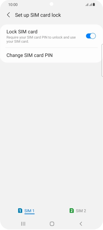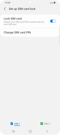 Press the indicator next to "Lock SIM card" to turn the function on or off.