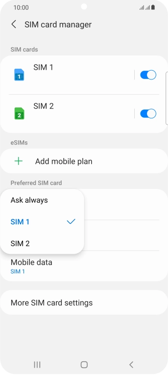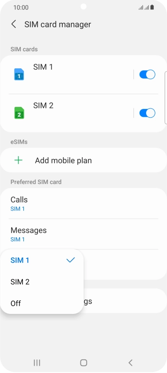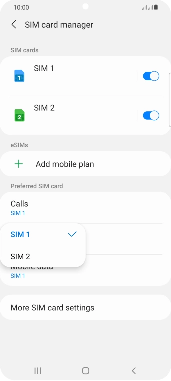When you insert two SIMs into your phone, you can make calls and send and receive messages from both SIMs. You can also select a default SIM for mobile data usage.