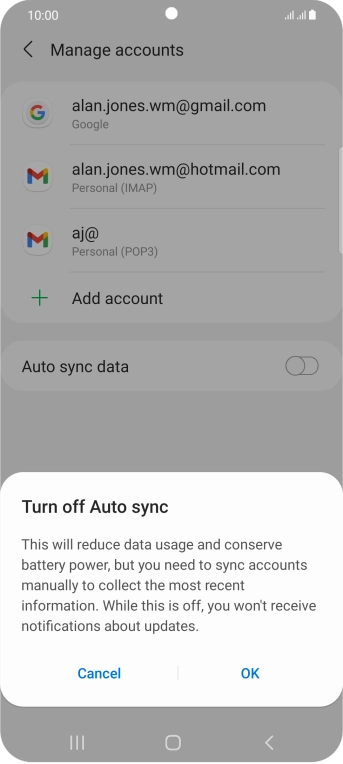 Press the indicator next to "Auto sync data" to turn the function on or off.