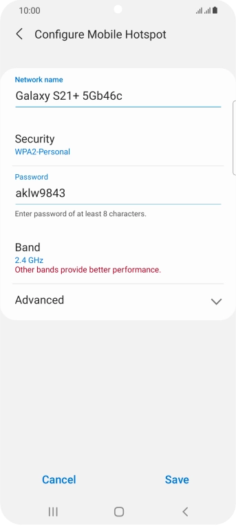 Press WPA2-Personal to password protect your Wi-Fi hotspot.