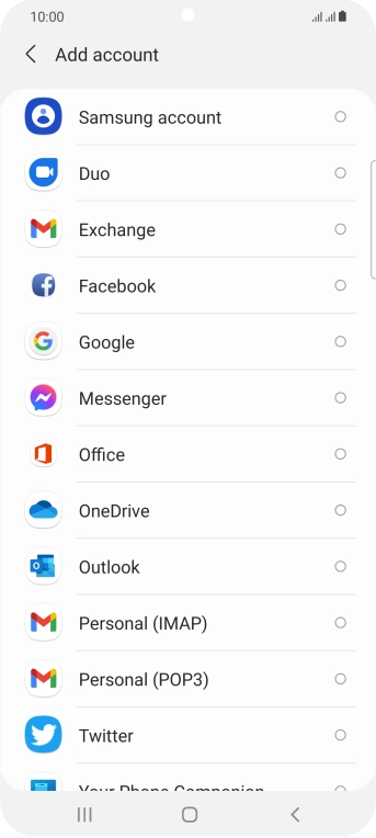 If this screen is displayed, you email account has been recognised and set up automatically. Follow the instructions on the screen to key in more information and finish setting up your phone.