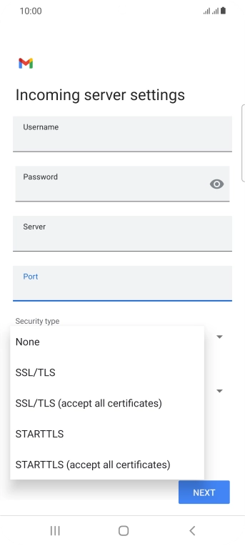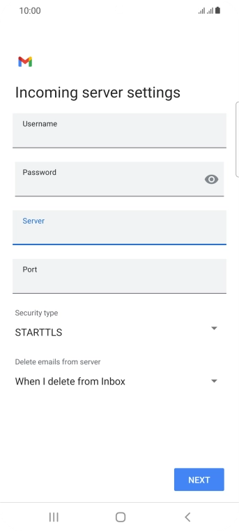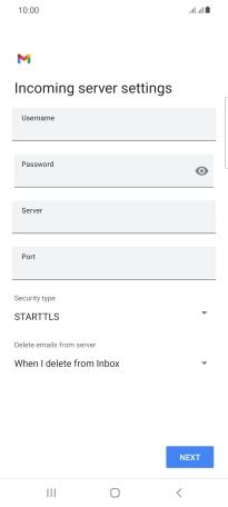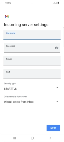Press the field below "Server" and key in the name of your email provider's incoming server.