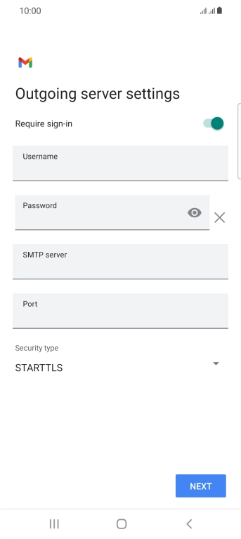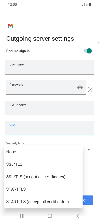 Press the field below "Username" and key in the username for your email the email provider's outgoing server.