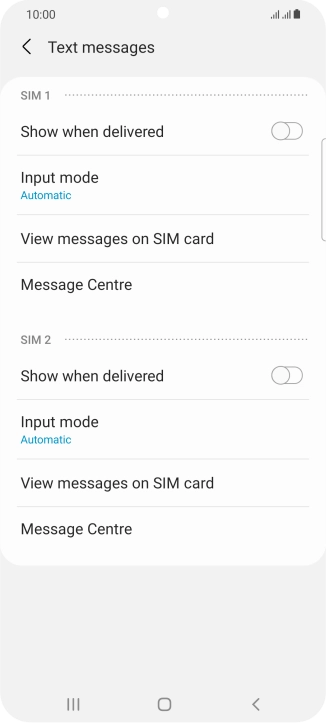 Press Message Centre below the required SIM.