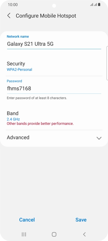 Press WPA2-Personal to password protect your Wi-Fi hotspot.