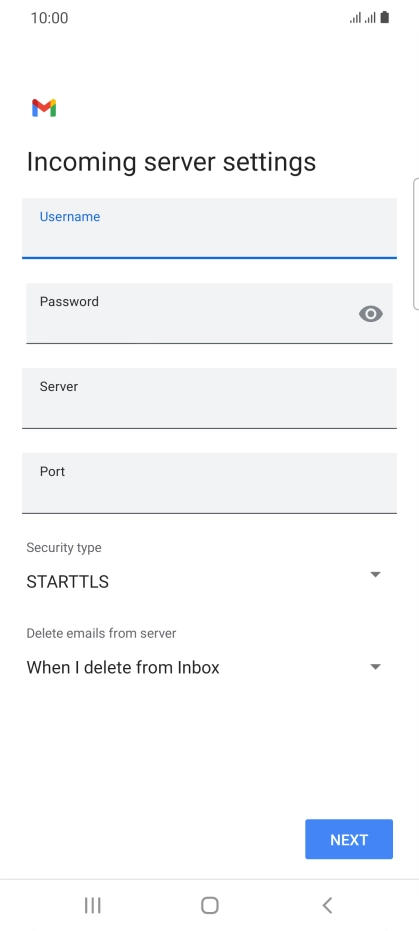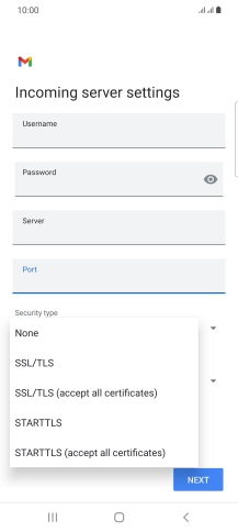 Press the field below "Server" and key in the name of your email provider's incoming server.