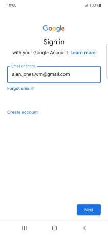 If you don't have a Google account, press Create account and follow the instructions on the screen to create an account.