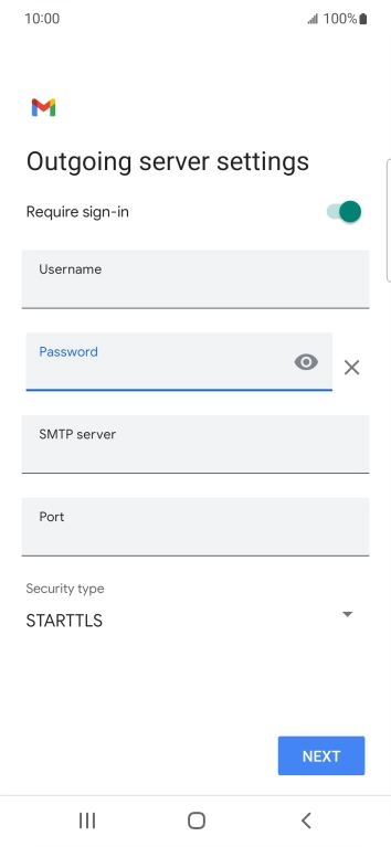 Press the field below "Password" and key in the password for your email provider's outgoing server.