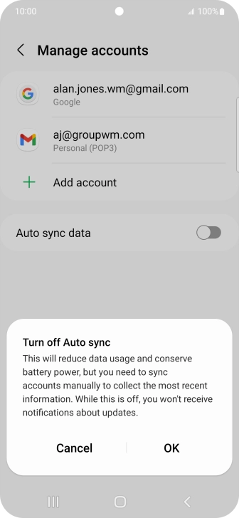 Press the indicator next to "Auto sync data" to turn the function on or off.