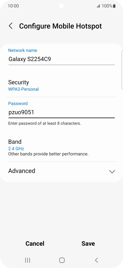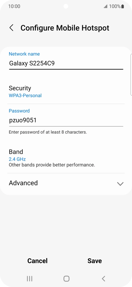 Press WPA3-Personal to password protect your Wi-Fi hotspot.