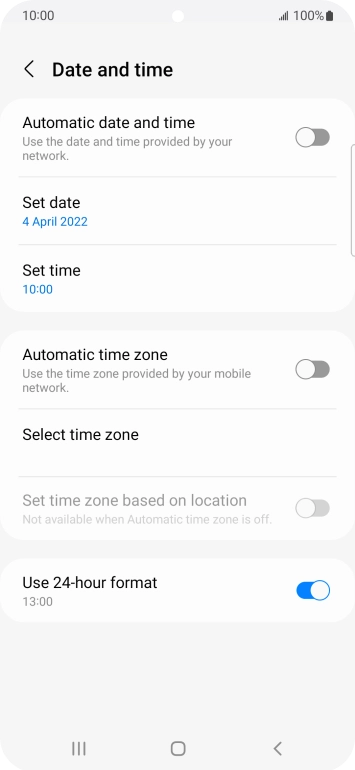 Press the indicator next to "Automatic date and time" to turn on the function.