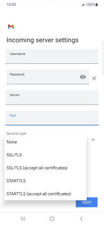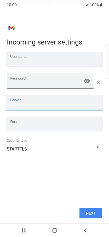 Press the field below "Server" and key in the name of your email provider's incoming server.
