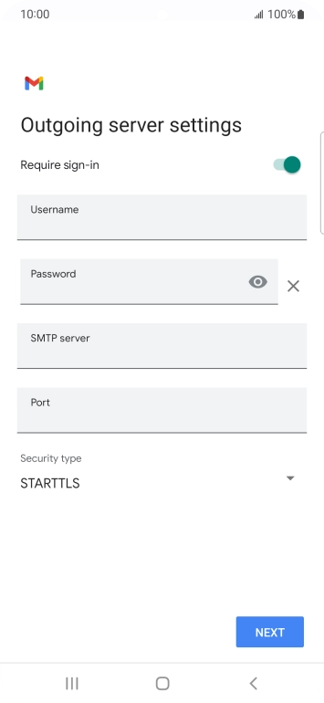 Press the field below "SMTP server" and key in the name of your email provider's outgoing server.