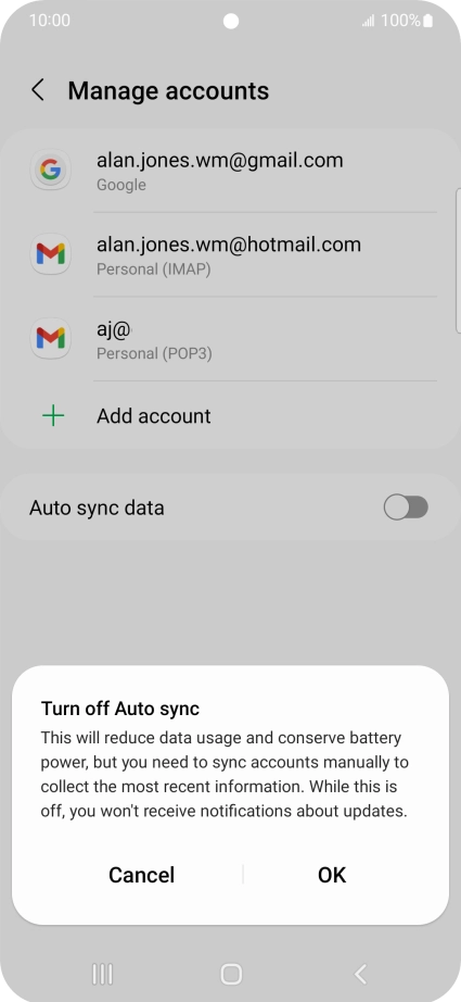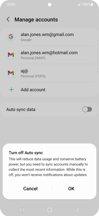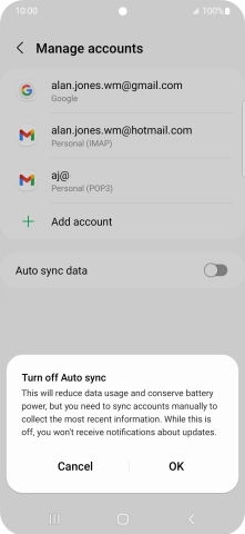 Press the indicator next to "Auto sync data" to turn the function on or off.