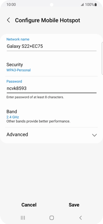 Press WPA3-Personal to password protect your Wi-Fi hotspot.