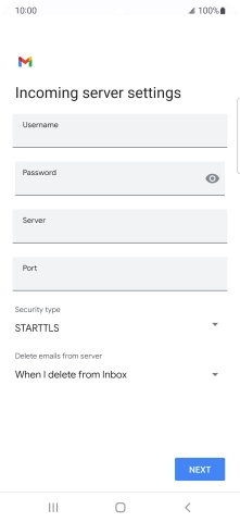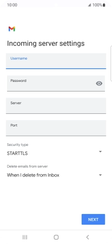 Press the field below "Server" and key in the name of your email provider's incoming server.