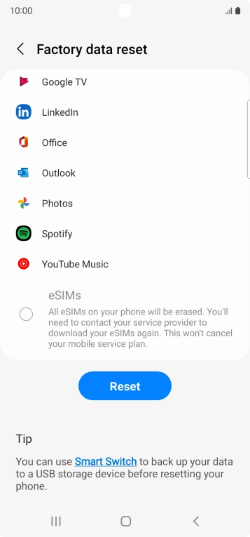 Press Factory data reset.