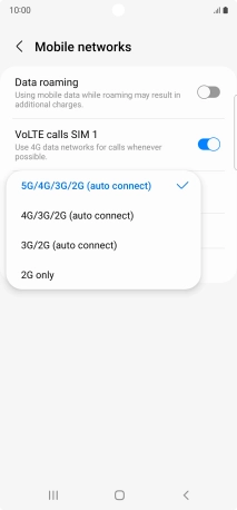 Press the required network mode.