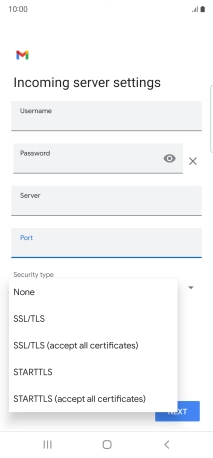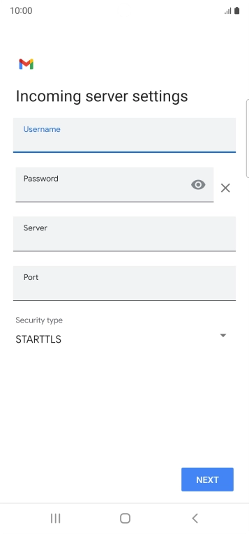 Press the field below "Server" and key in the name of your email provider's incoming server.