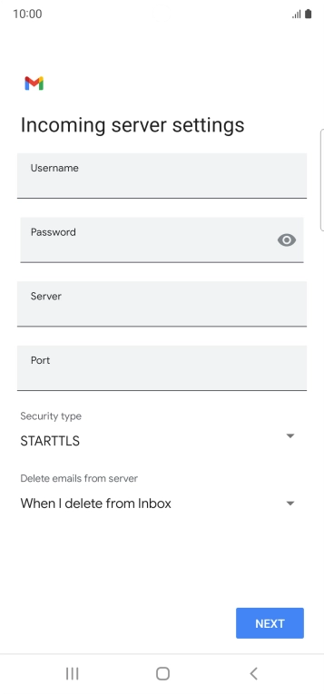 Press the field below "Server" and key in the name of your email provider's incoming server.