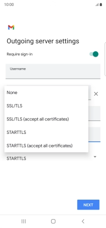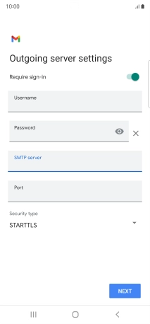 Press the field below "Username" and key in the username for your email the email provider's outgoing server.