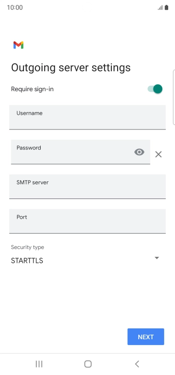 Press the field below "SMTP server" and key in the name of your email provider's outgoing server.