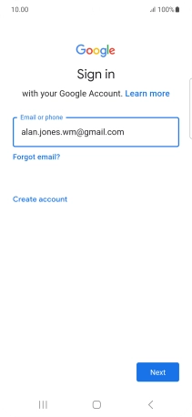 If you don't have a Google account, press Create account and follow the instructions on the screen to create an account.