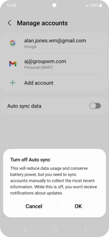 Press the indicator next to "Auto sync data" to turn the function on or off.